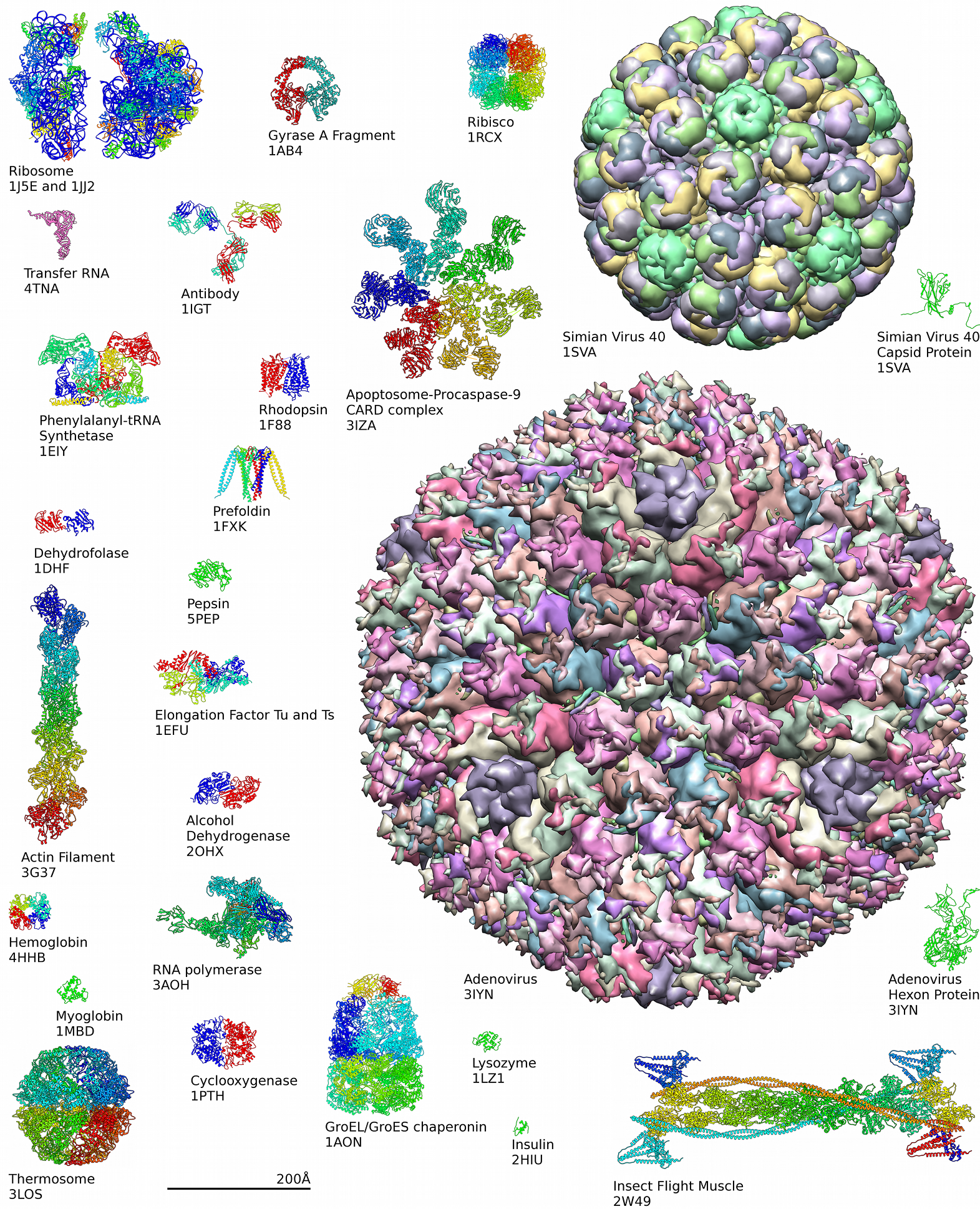 Biomolecules are too small to see in detail even with the most advanced light microscopes. The methods that structural biologists use to determine their structures generally involve measurements on vast numbers of identical molecules at the same time. These methods include: