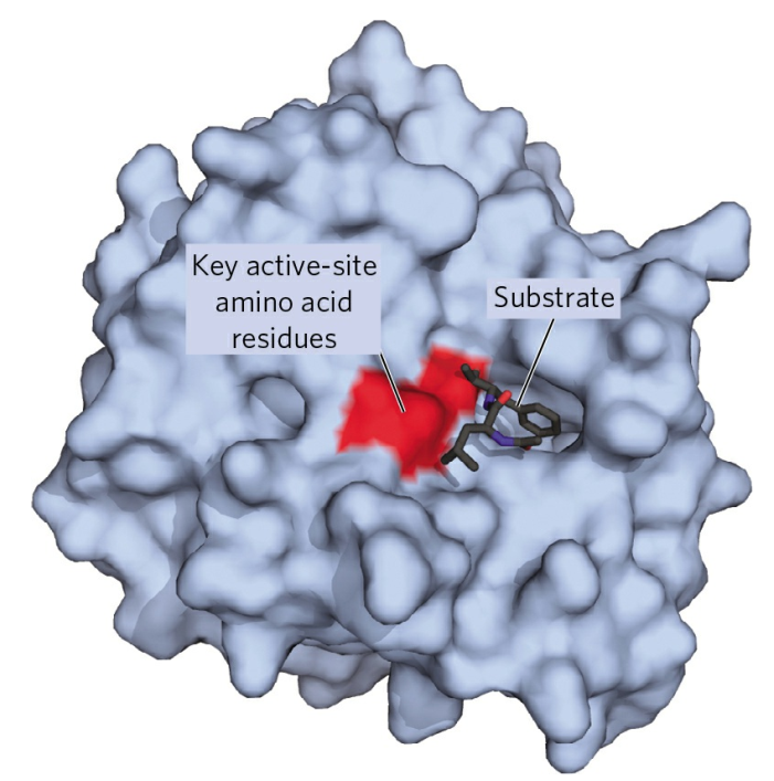 Modifications in the structure of the amino acids at or near the active site usually affect the enzyme’s activity, because these amino acids are intimately involved in the fit and attraction of the substrate to the enzyme surface. The characteristics of the amino acids near the active site determine whether or not a substrate molecule will fit into the site. A molecule that is too bulky in the wrong places cannot fit into the active site and thus cannot react with the enzyme. In a similar manner, a molecule lacking essential attractive forces or the appropriately charged regions might not be bound to the enzyme. On the other hand, a molecule with a bulky group at a position such that it does not interfere with the binding of the molecule to the enzyme or with the function of the active site is able to serve as a substrate for the enzyme. The idea of a fit between substrate and enzyme, called the “ key–lockhypothesis, was proposed by German chemist Emil Fischer in 1899 and explains one of the most important features of enzymes, their specificity. In most of the enzymes studied thus far, a cleft, or indentation, into which the substrate fits is found at the active site.