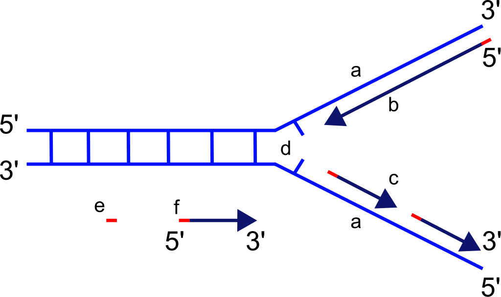 Bu aşamada iki DNA teli DNA polimeraz için kalıplar olur ve enzim serbest DNA için yapı-taşları olan nükleotidlerden yeni bir DNA teli bireştirir.