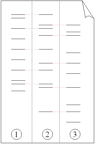 Electrophoresis of PCR-amplified DNA fragments. (1) Father. (2) Child. (3) Mother. The child has inherited some, but not all of the fingerprints of each of its parents, giving it a new, unique fingerprint.