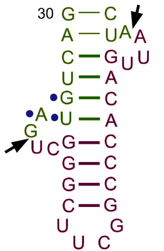 Bulge-helix-bulge motive of tRNA intron. |