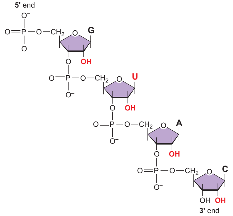 RNAda nükleotidler fosfodiester bağı ile birbirine eklenerek 5ʹ—3ʹ yönünde doğrusal bir zincir oluşturur.