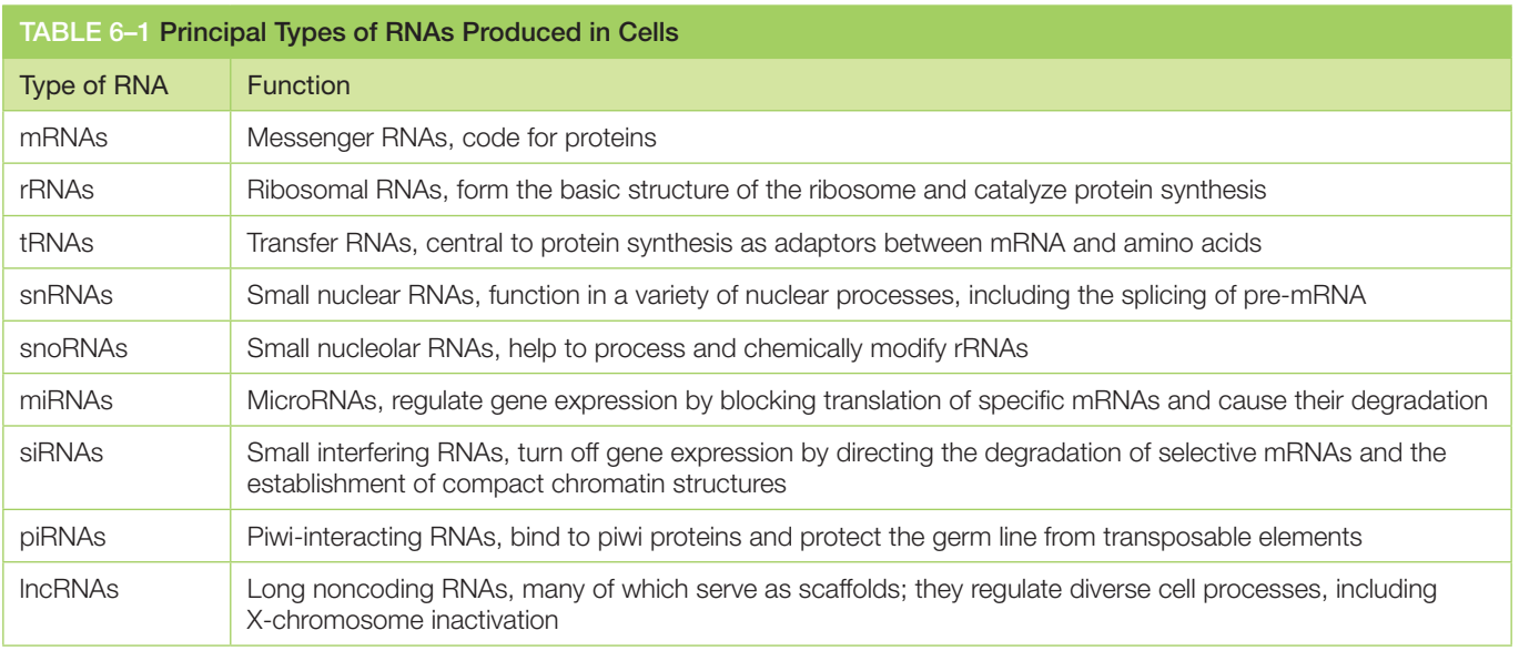 Bu üç RNA tipi, DNA gibi, dallanmayan polimerik moleküllerden oluşur.