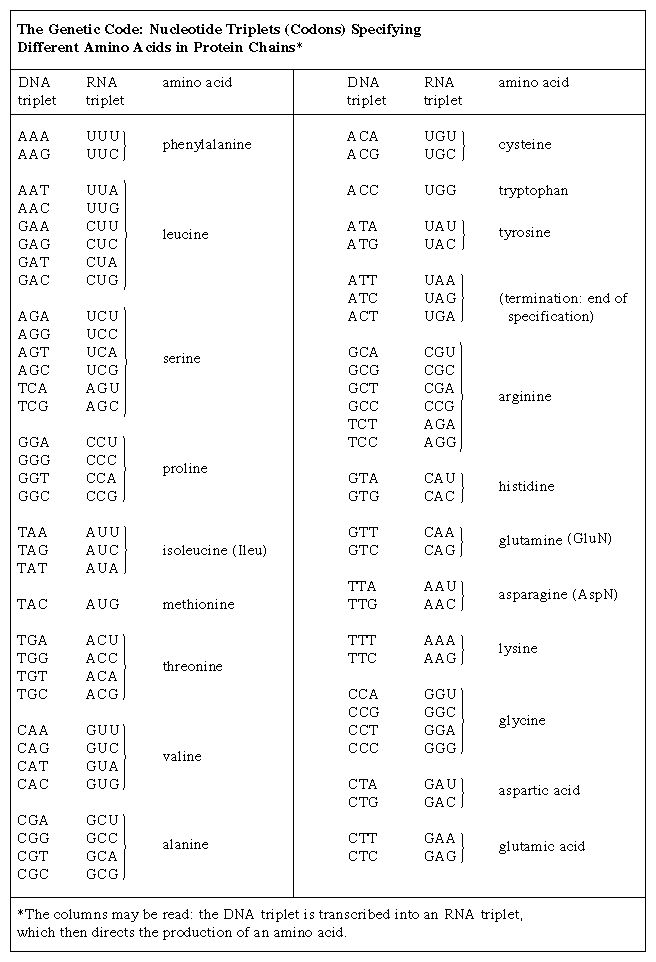 One of the crowning achievements of molecular biology was the elucidation during the 1960s of the genetic code. Principals in this effort were Har G. Khorana and Marshall W. Nirenberg, who shared a Nobel Prize in 1968. Khorana and Nirenberg used artificial templates and protein synthesizing systems in the test tube to determine the coding potential of all 64 possible triplet codons (see the table). The key feature of the genetic code is that the 20 amino acids are encoded by 61 codons. Thus, there is degeneracy in the code such that one amino acid is often specified by more than one codon. In the case of serine and leucine, six codons can be used for each. Among organisms that have been examined in detail, the code appears to be almost universal, from bacteria through archaea to eukaryotes. The known exceptions are found in the mitochondria of humans and many other organisms as well as in some species of bacteria. The structure within the genetic code whereby many amino acids are uniquely coded by the first two bases of the codon strongly suggests that the code has itself evolved from a more primitive code involving 16 dinucleotides. How the individual amino acids became associated with the different codons remains a matter of speculation.