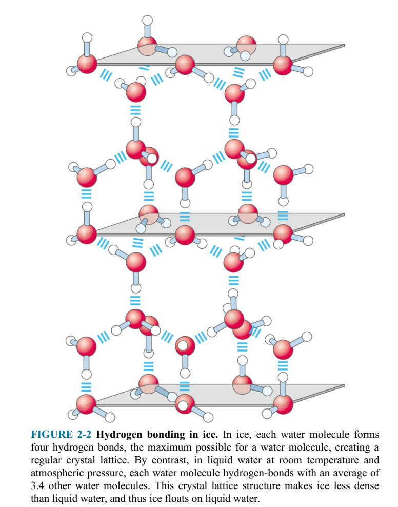 - Su molekülleri arasındaki Hidrojen bağları oda sıcaklığında suyu sıvı durumunda ve düşük sıcaklıklarda katı kristal (buz) durumunda tutan kohesiv kuvvetleri sağlar.