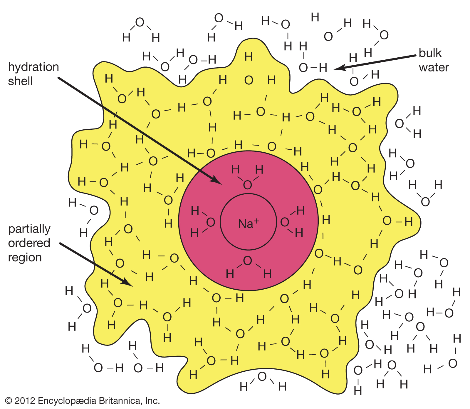 + OH−, in combination with solvation of the resulting hydronium ions. |