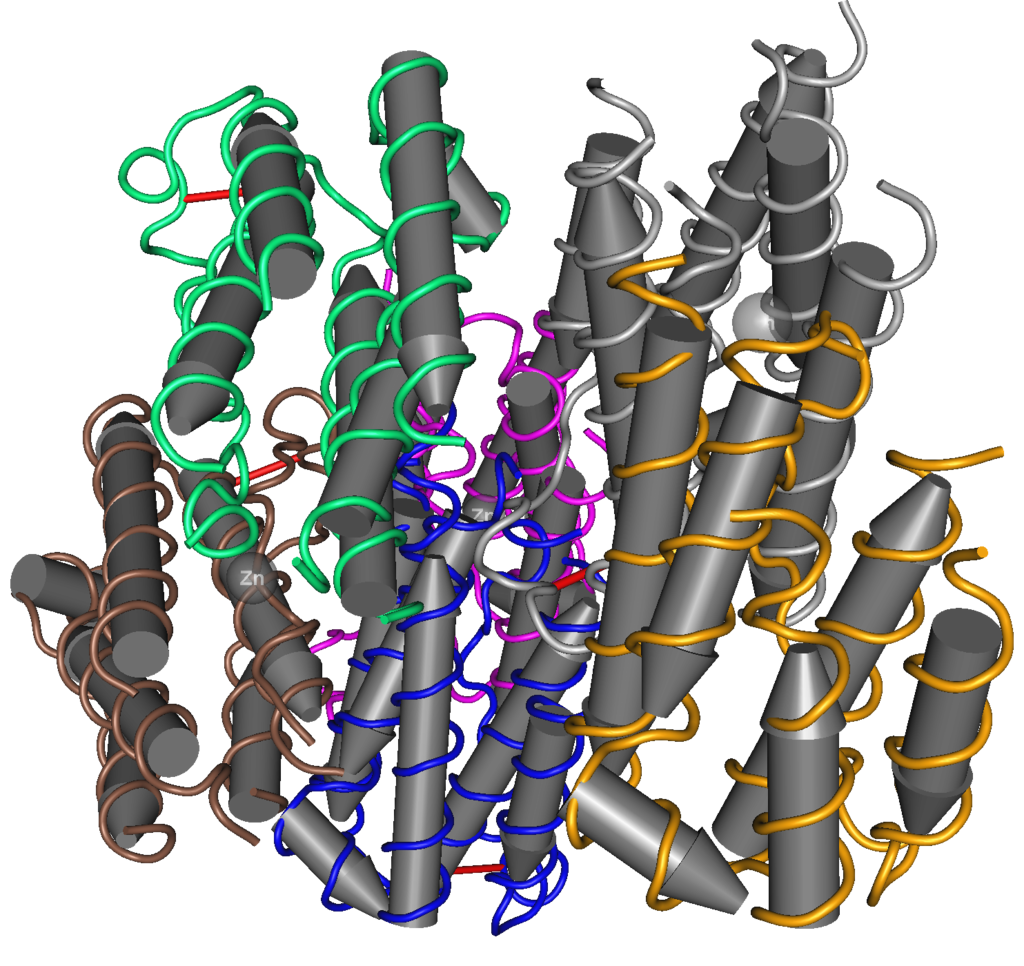 Structure of the H2AFJ protein. Based on PyMOL rendering of PDB 1aoi. |