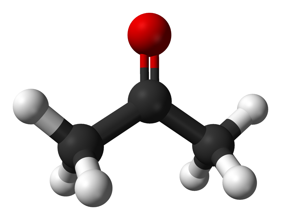 Representation of an organic hydroxy group, where R represents a hydrocarbon or other organic moiety, the red and grey spheres represent oxygen and hydrogen atoms respectively, and the rod-like connections between these, covalent chemical bonds. |