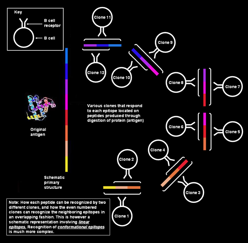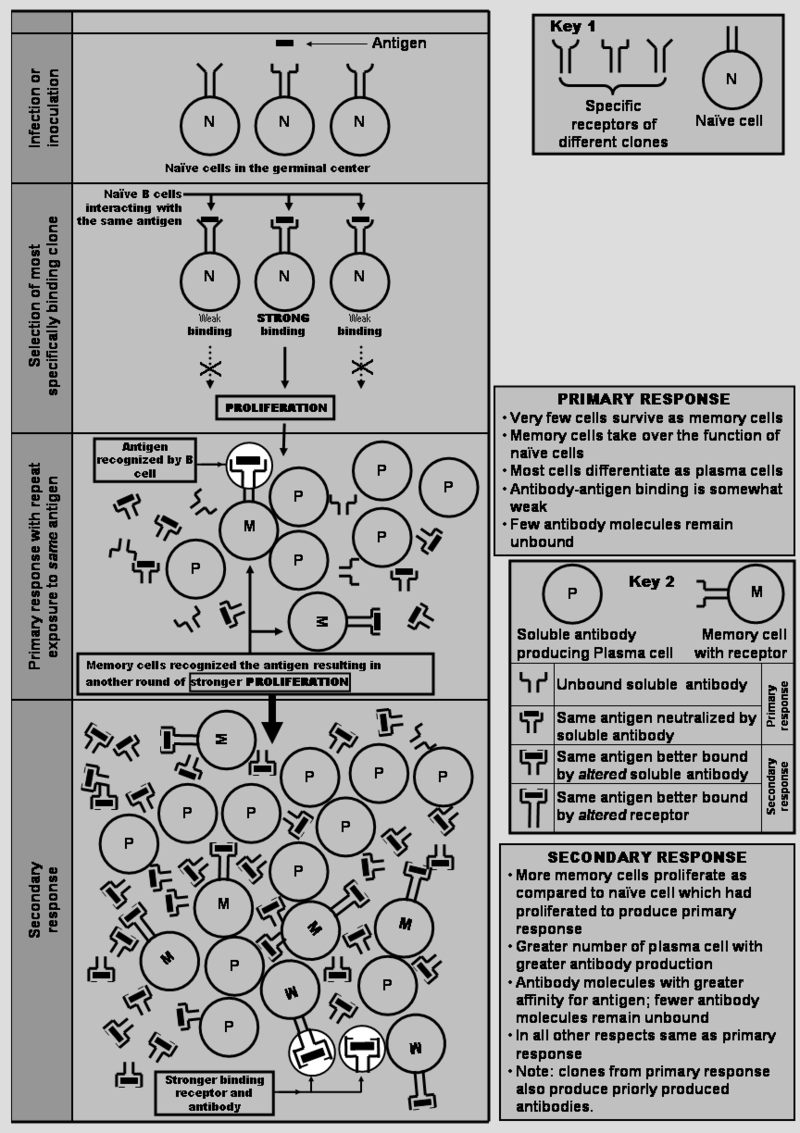 Original antigenic sin, descriptive diagram. en:Original antigenic sin refers to the propensity of the body's immune system to preferentially utilize immunological memory based on a previous infection when a second slightly different version of that foreign entity is encountered..