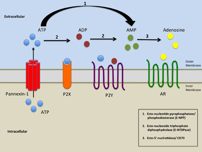 Purinergic receptors, also known as purinoceptors, are a family of plasma membrane molecules that are found in almost all mammalian tissues. Within the field of purinergic signalling, these receptors have been implicated in learning and memory, locomotor and feeding behavior, and sleep. More specifically, they are involved in several cellular functions, including proliferation and migration of neural stem cells, vascular reactivity, apoptosis and cytokine secretion. These functions have not been well characterized and the effect of the extracellular microenvironment on their function is also poorly understood.