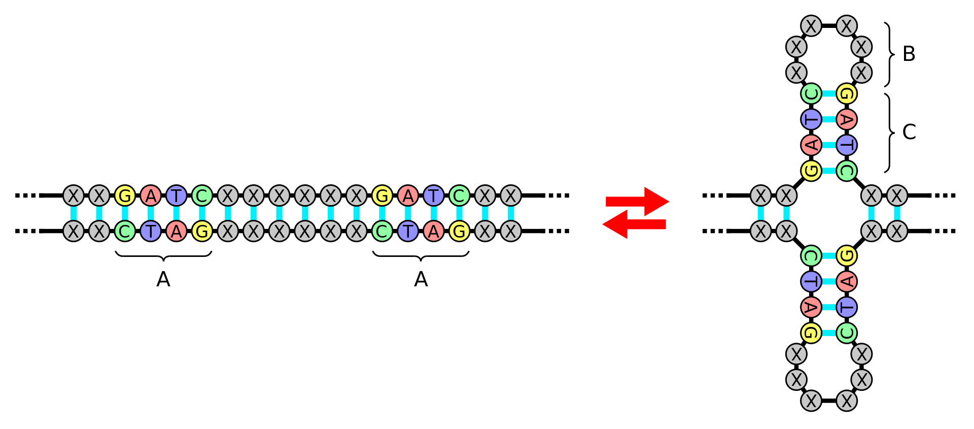 Palindrome of DNA structure A: Palindrome, B: Loop, C: Stem.