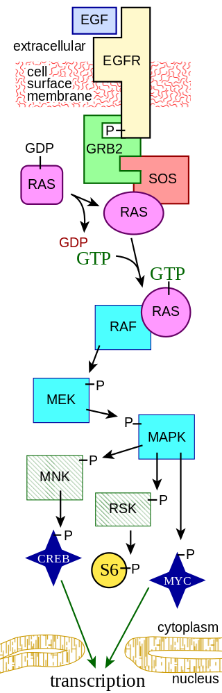 Diagram showing key components of a signal transduction pathway. See the MAPK/ERK pathway article for details.