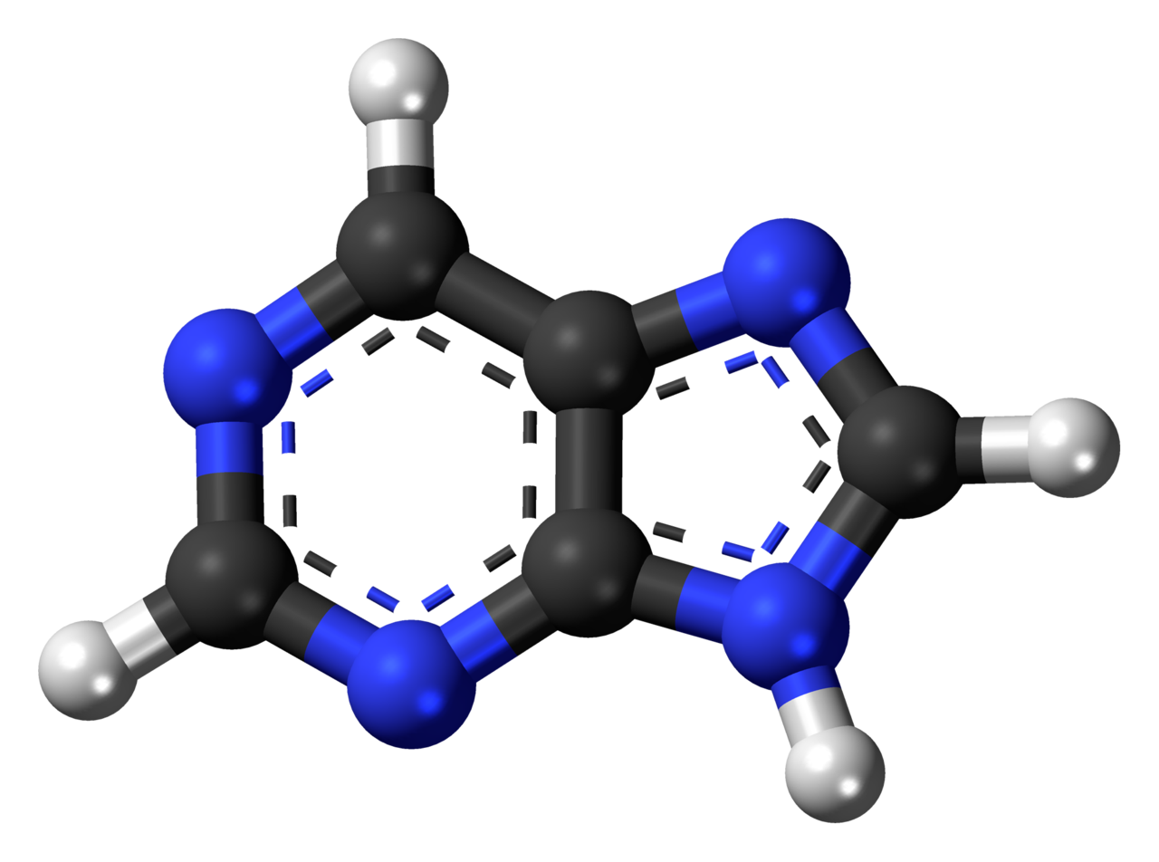 Purine is a heterocyclicaromaticorganic compound that consists of a two rings in their structure. It is water-soluble. Purine also gives its name to the wider class of molecules, purines, which include substituted purines and their tautomers. They are the most widely occurring nitrogen-containing heterocycles in nature.