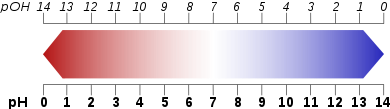 In chemistry,pH (denoting 'potential of hydrogen' or 'power of hydrogen') is a scale used to specify the acidity or basicity of an aqueous solution. Lower pH values correspond to solutions which are more acidic in nature, while higher values correspond to solutions which are more basic or alkaline. At room temperature (25°C or 77°F), pure water is neutral (neither acidic nor basic) and therefore has a pH of 7.