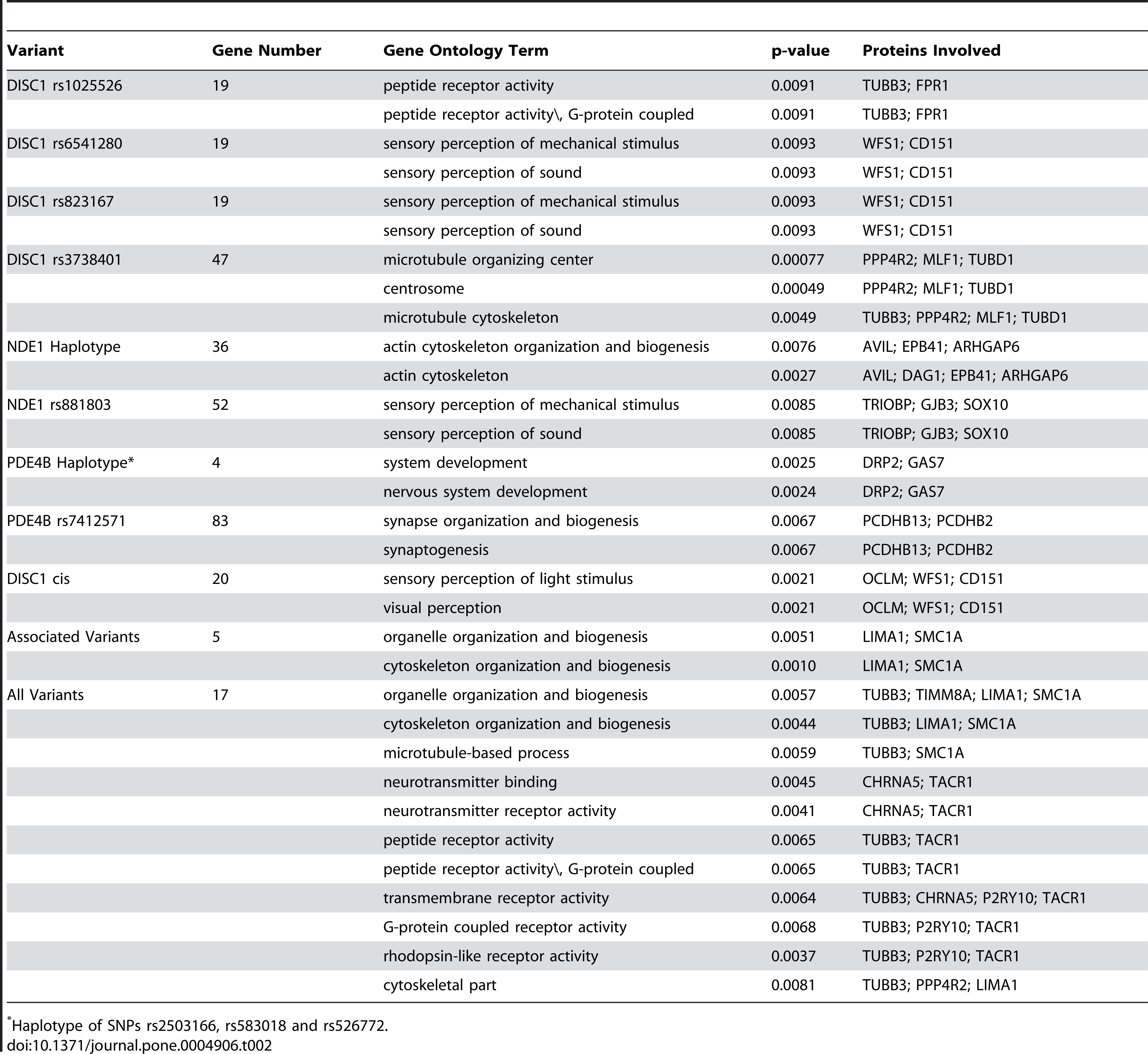Table 2. Table of significant gene ontology terms that are biologically relevant to the DISC1 pathway or major mental illness.