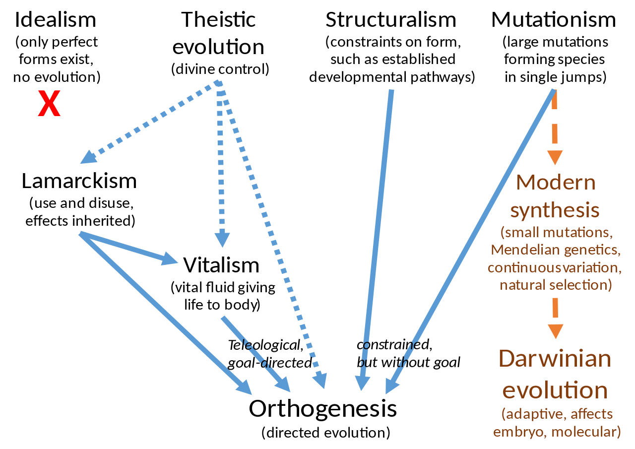 Theistic evolution largely disappeared from the scientific literature by the end of the 19th century as direct appeals to supernatural causes came to be seen as unscientific. The other alternatives had significant followings well into the 20th century; mainstream biology largely abandoned them only when developments in genetics made them seem increasingly untenable, and when the development of population genetics and the modern synthesis demonstrated the explanatory power of natural selection.Ernst Mayr wrote that as late as 1930 most textbooks still emphasized such non-Darwinian mechanisms. (W)