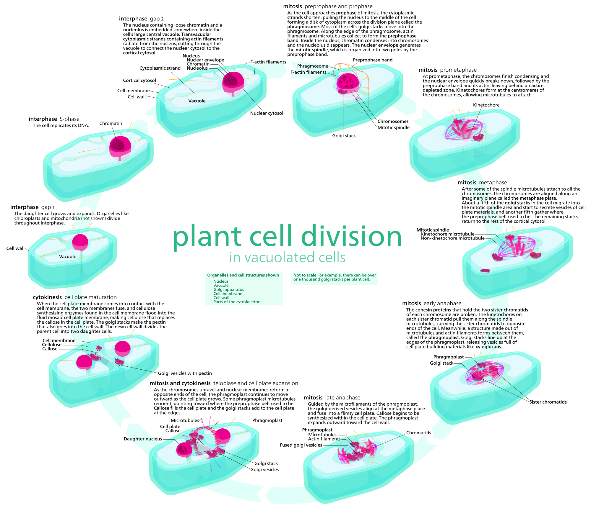 Chromatin is a complex of DNA and proteinfound in eukaryotic cells. Its primary function is packaging long DNA molecules into more compact, denser structures. This prevents the strands from becoming tangled and also plays important roles in reinforcing the DNA during cell division,preventing DNA damage, and regulating gene expression and DNA replication. During mitosis and meiosis, chromatin facilitates proper segregation of the chromosomes in anaphase; the characteristic shapes of chromosomes visible during this stage are the result of DNA being coiled into highly condensed chromatin. (W)