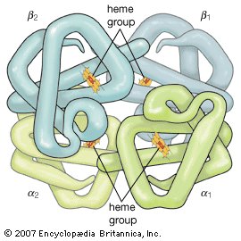 Many other commonalities exist among organisms on Earth. Only one class of molecules stores energy for biological processes until the cell has use for it; these molecules are all nucleotide phosphates. The most common example is adenosine triphosphate (ATP). For the very different function of energy storage, a molecule identical to one of the building blocks of the nucleic acids (both DNA and RNA) is employed. Metabolically ubiquitous molecules—flavin adenine dinucleotide (FAD) and coenzyme A—include subunits similar to the nucleotide phosphates. Nitrogen-rich ring compounds, called porphyrins, represent another category of molecules; they are smaller than proteins and nucleic acids and common in cells. Porphyrins are the chemical bases of the heme in hemoglobin, which carries oxygen molecules through the bloodstream of animals and the nodules of leguminous plants. Chlorophyll, the fundamental molecule mediating light absorption during photosynthesis in plants and bacteria, is also a porphyrin. In all organisms on Earth, many biological molecules have the same “handedness” (these molecules can have both “left-” and “right-handed” forms that are mirror images of each other; see belowThe earliest living systems). Of the billions of possible organic compounds, fewer than 1,500 are employed by contemporary life on Earth, and these are constructed from fewer than 50 simple molecular building blocks.