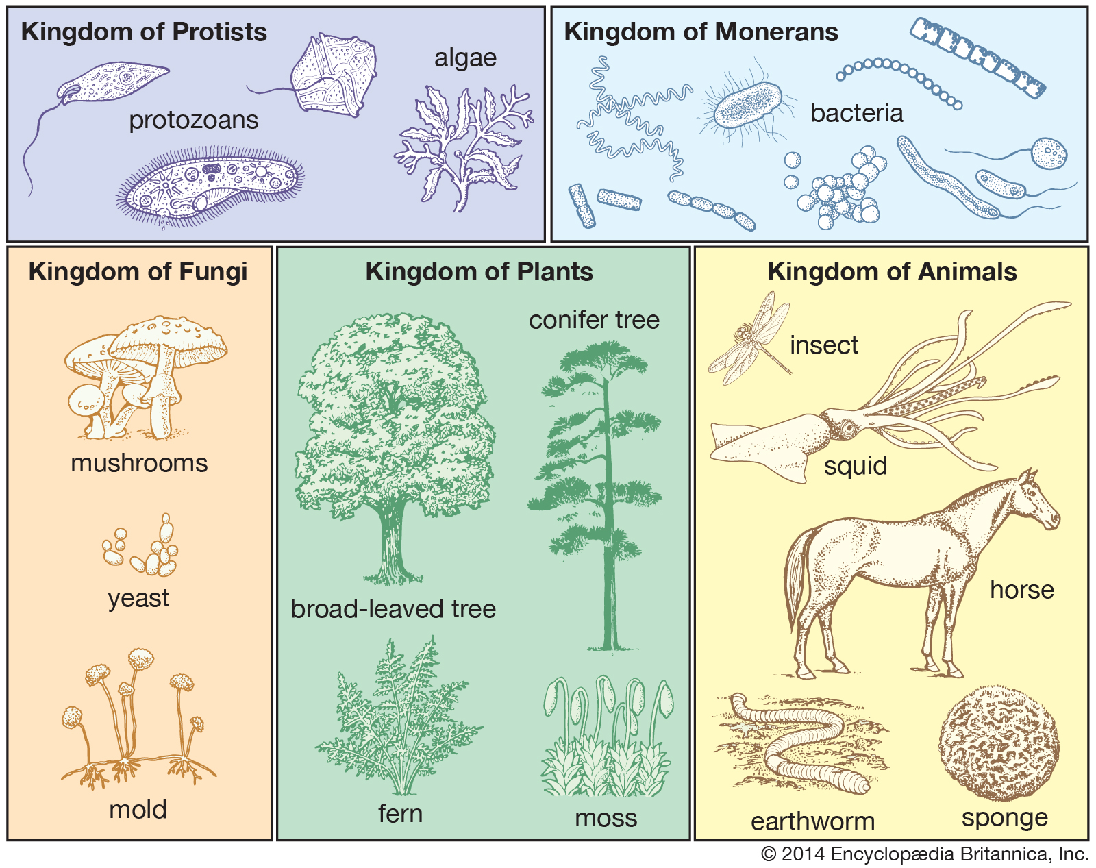 Modern biology, following the lead of the German biologist Ernst Haeckel and the American biologists Herbert F. Copeland and Robert H. Whittaker, has now thoroughly abandoned the two-kingdom plant-versus-animal dichotomy. Haeckel proposed three kingdoms when he established “Protista” for microorganisms. Copeland classified the microorganisms into the Monerans (prokaryotes) and the Protoctista (which included fungi with the rest of the eukaryotic microorganisms). His four-kingdom scheme (Monera, Protoctista, Animalia, and Plantae) had the advantage of clearly separating microbes with nuclei (Protoctista) from those without (Monera: the prokaryotes—that is, the bacteria and archaea) and of distinguishing the two embryo-forming groups—plants and animals—from the rest of life. Whittaker, on ecological grounds, raised the fungi to kingdom status. The modified Whittaker five-kingdom classification system is perhaps the most comprehensible and biologically based way to unambiguously organize information about all groups of living beings. American microbiologist Carl Woese has offered still another classification scheme, in which all organisms are placed in either the Archaea (prokaryotes that include some salt lovers, acid lovers, and methane producers), the Bacteria (all other prokaryotes, including obligate anaerobic bacteria as well as photosynthetic and chemoautotrophic bacteria), or the Eukarya (all eukaryote forms of life). Woese’s scheme is based on molecular biological criteria that focus on the RNA sequence of morphological factors to classify new or disputed organisms. Although Woese’s three-domain system is very popular, a potential problem with it is that RNA, one characteristic among thousands, does not consistently correlate with many others.