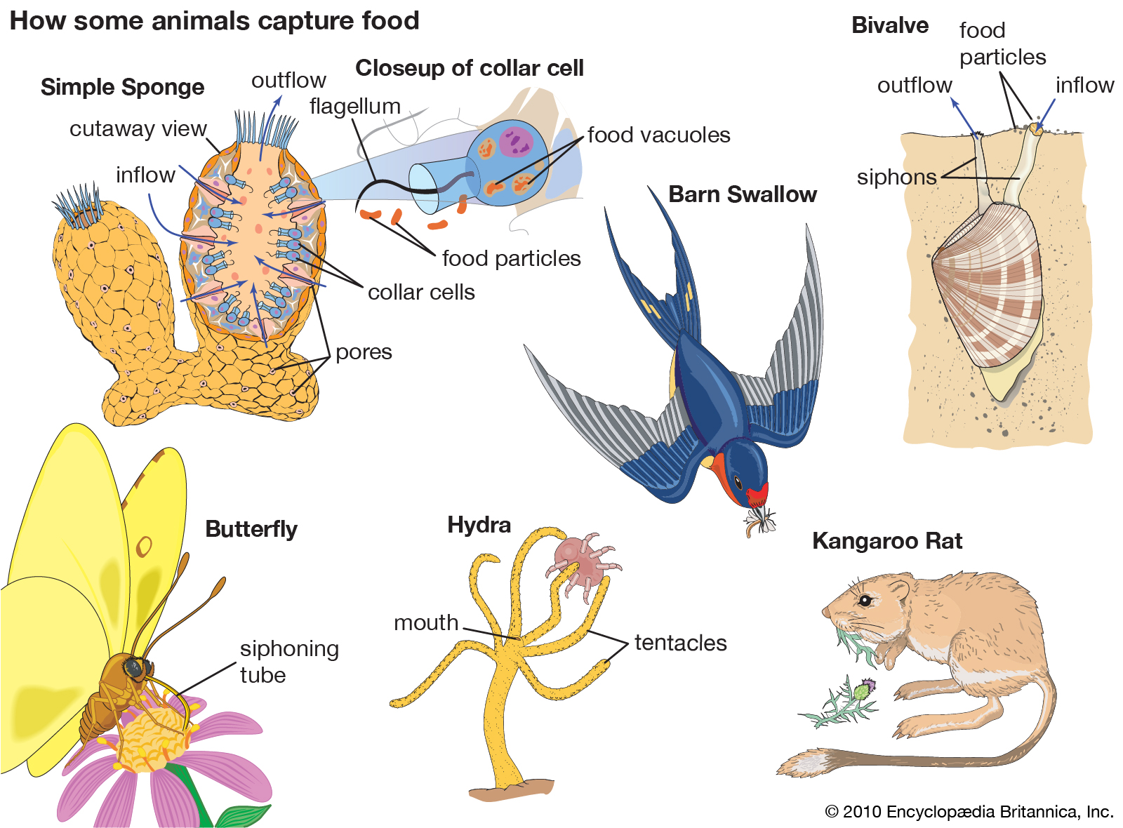 No metabolic process occurs in a single step. The ordinary six-carbon sugar, glucose, does not oxidize to carbon dioxide and water in living cells in the same way that glucose in air burns. Any release of energy by burning would be too sudden and too concentrated in a small volume to happen safely inside the tiny cell. Instead, glucose is broken down at ambient (i.e., relatively cool) temperatures by a series of successive and coordinated steps. Each step is mediated by a particular and specific enzyme. In most cells that metabolize glucose, the sugar first breaks down in a set of steps that occur in the absence of oxygen. The total number of such steps in plants, animals, fungi, and protists (see belowHypotheses of origins) is about 11. Other organisms, primarily bacteria and obscure protists and fungi, are anaerobes: they do not utilize molecular oxygen in their metabolism. In anaerobes, glucose metabolism stops at compounds such as ethanol or lactic acid.Aerobic organisms, including all animals, carry the oxidation of glucose farther. They rapidly use anaerobic glucose breakdown products such as lactic acid, ethanol, or acetate with Krebs-cycle intermediates in the mitochondria.Aerobic oxidation of glucose requires an additional 60 enzyme-catalyzed steps. The anaerobic breakdown of glucose uses enzymes suspended freely in solution in the cells. The aerobic steps occur on enzymes localized in mitochondria, the “power packs” of cells where oxygen gas is used to make the energy compound ATP. The complete aerobic breakdown of sugar to carbon dioxide and water is about 10 times more efficient than the anaerobic in that 10 times as many ATP molecules are produced. (Seemetabolism.)