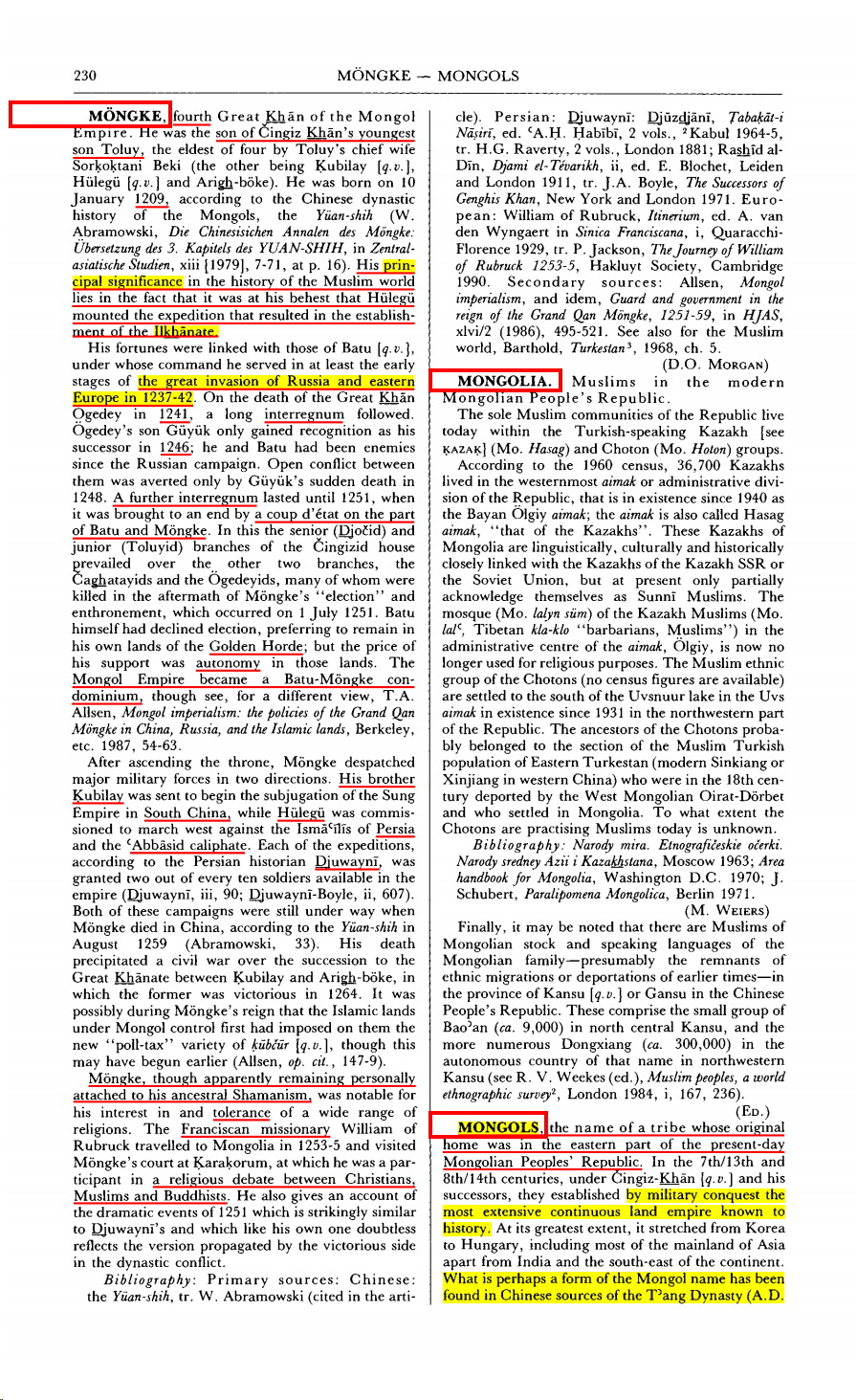 The most important, authoritative reference work in English on Islam and Islamic subjects. Includes long, signed articles, with bibliographies. Special emphasis is given in this (EI2) edition to economic and social topics, but it remains the standard encyclopedic reference on the Islamic religion in English.[3]