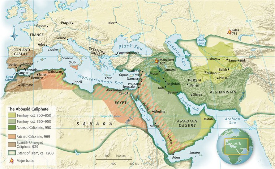 🗺️ 🔎 Islam and Christendom under Harun al-Rashid (786-809) and Charlemagne (768-814) (MAP)