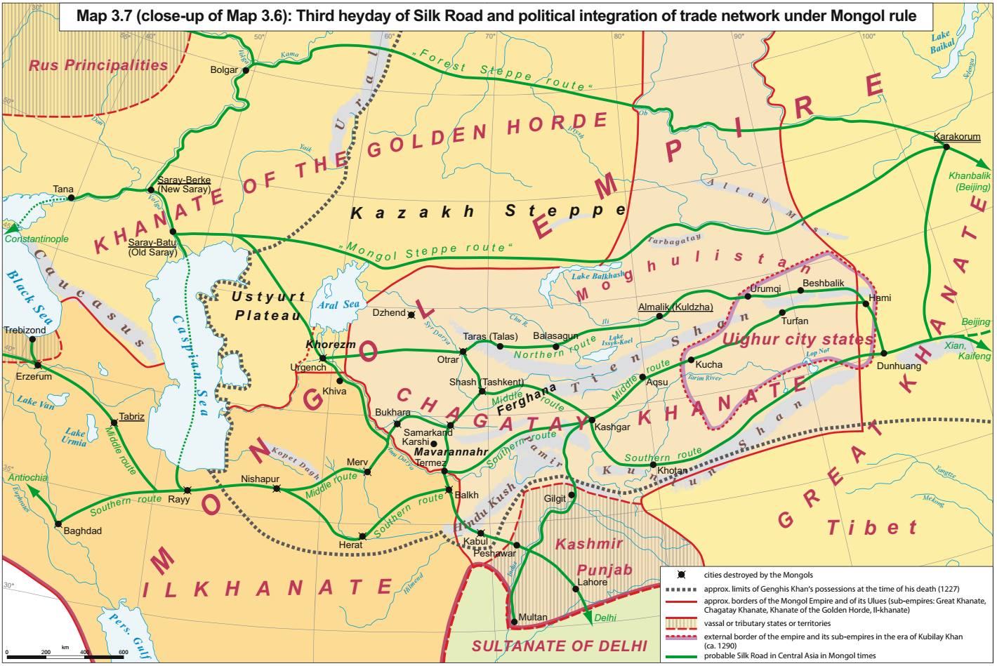 Central Asia has long been the point of transmission between eastern and western culture; such is reflected in its history. This video shows how it changed over time from 209 BCE to 1244.