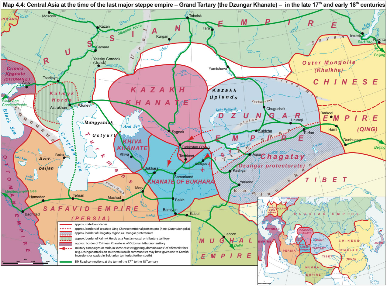 The last steppe empire to emerge was that of the Dzungars who conquered much of East Turkestan and Mongolia. However, in a sign of the changed times they proved unable to match the Chinese and were decisively defeated by the forces of the Qing Dynasty. In the 18th century the Qing emperors, themselves originally from the far eastern edge of the steppe, campaigned in the west and in Mongolia, with the Qianlong Emperor taking control of Xinjiang in 1758. The Mongol threat was overcome and much of Inner Mongolia was annexed to China.