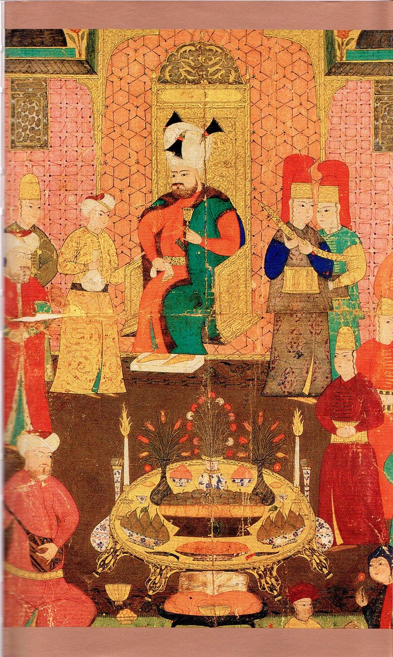 Ottoman miniature painting depicting Murad IV during dinner. |