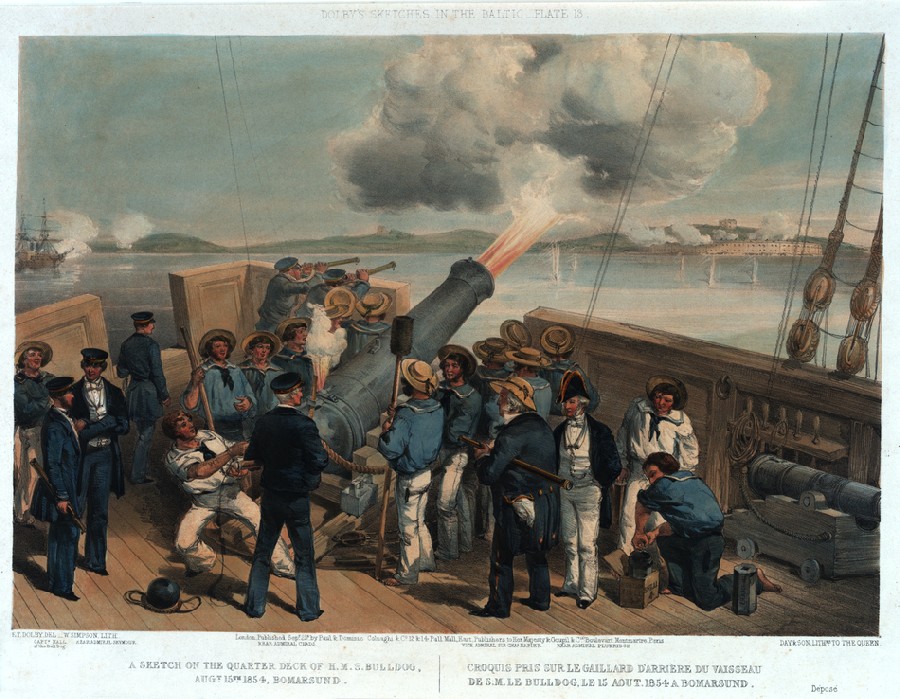 Bombardment of Bomarsund during the Crimean War, after William Simpson.