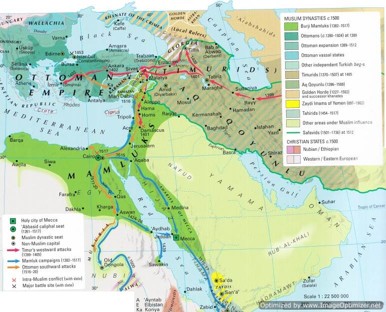 There is universal agreement among historians that the Mamlūk state reached its height under the Turkish sultans and then fell into a prolonged phase of decline under the Circassians. The principal achievements of the Turkish Mamlūks lay in their expulsion of the remaining crusaders from the Levant and their rout of the Mongols in Palestine and Syria; they thereby earned the thanks of all Muslims for saving Arabic-Islāmic civilization from destruction. It is doubtful, however, that such a goal figured in their plans; rather, as rulers of Egypt they were seeking to reconstitute the Egyptian Empire. The Mamlūks also sought to extend their power into the Arabian Peninsula and into Anatolia and Little Armenia; to protect Egypt’s rear, they strove to establish their presence in Nubia.