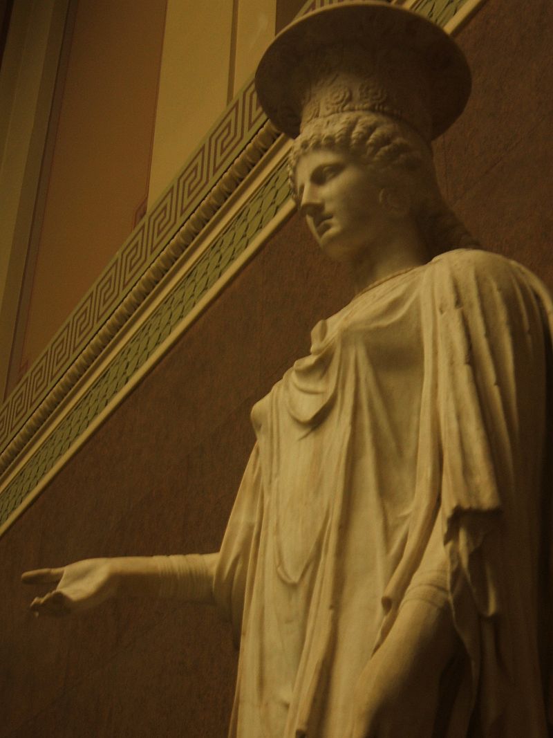 The Townley Caryatid is a 7.25m high Pentelic marble caryatid, depicting a woman dressed to take part in religious rites (possibly fertility rites related to Demeter or Ceres, due to the cereal motifs on her modius headdress).