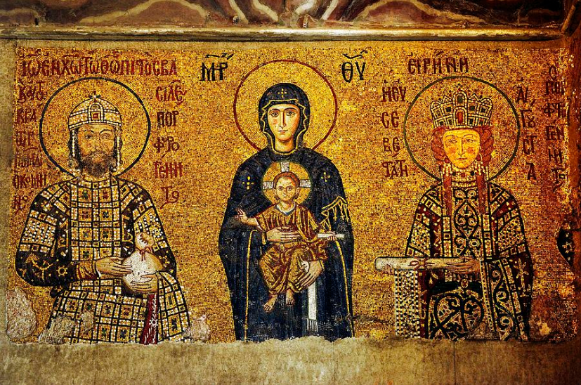 Hagia Sophia, Istanbul. The Comnenus Mosaic. Virgin Mary With Jesus, Emperor John II Comnenus And Empress Irene. |